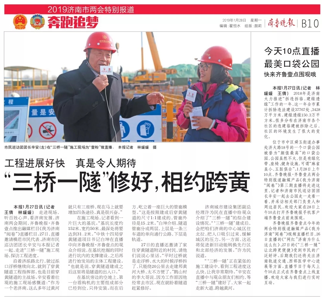 走進現場,聽百姓心聲,看濟南發展,濟南兩會期間,齊魯晚報·齊魯壹點推出融媒欄目《我為濟南“閱卷”》直播欄目。1月27日,模范市民代表、濟南市民巡訪團團長辛安與齊魯晚報記者一起,走進濟南黃河隧道施工現場,探訪“三橋一隧”工程進度。