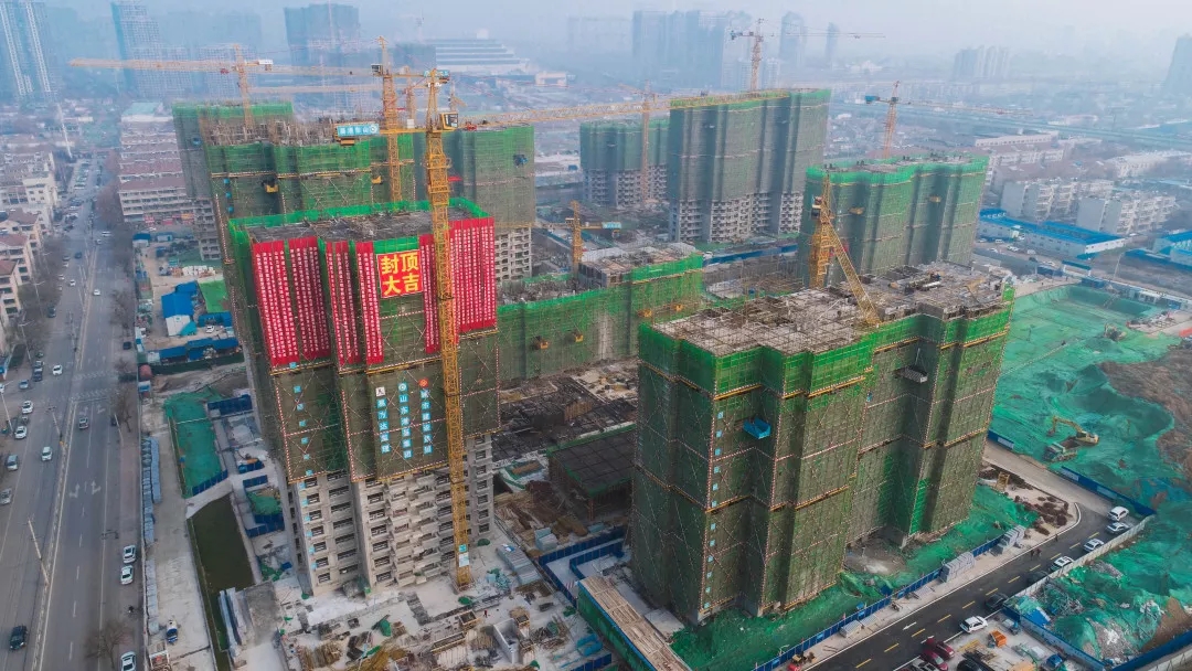 施工過程中,各參建單位工作人員全力以赴,奮戰在施工一線,積極克服惡劣天氣影響,搶抓工期,經過一年的艱苦奮戰,提前完成封頂任務。B-4地塊6#樓的封頂標志著張莊村、劉莊村城中村改造項目安置房工程一、二期項目建設進入了一個里程碑式的新階段,項目14棟住宅樓平均施工至20層,為按期完成總進度目標奠定了堅實基礎。