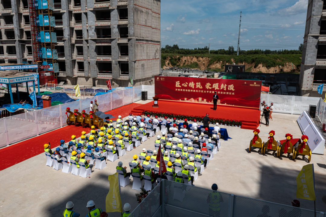 8月27日,濟南新舊動能轉換起步區太平安置區項目北地塊1號樓和5號樓同時封頂,為該項目首批封頂樓體,標志著項目建設取得階段性成果,將進入主體陸續封頂的新階段。起步區管委會、濟南城市建設集團、中建五局及各參建單位的相關負責同志,一線建設者代表參加封頂儀式。