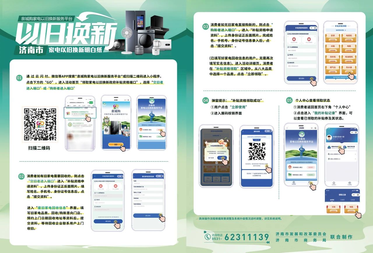 為深入貫徹黨中央、國(guó)務(wù)院關(guān)于加力支持大規(guī)模設(shè)備更新和消費(fèi)品以舊換新決策部署,市發(fā)展改革委、市財(cái)政局、市商務(wù)局、市交通運(yùn)輸局、市農(nóng)業(yè)農(nóng)村局等五部門聯(lián)合印發(fā)《濟(jì)南市超長(zhǎng)期特別國(guó)債資金支持消費(fèi)品以舊換新工作方案》,切實(shí)挖掘消費(fèi)潛力,提振消費(fèi)能力。